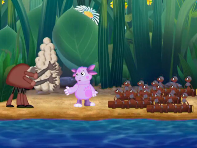 Муравьи упорно пытаются соорудить переправу через ручей, но бурный поток всякий раз уносит их строительные материалы. Что же делать? Находчивый Лунтик придумал: надо сделать навесной мост из паутины. Только это и остановит Паука Шнюка, который срочно сматывает всю свою паутину и собирается навсегда забросить свое основное занятие, потому что его сети всем мешают. Лунтик доказывает и Червяку, и Бабе Капе с Генералом Шером, и другим жителям леса, что паутина еще не раз сослужит им добрую службу.
