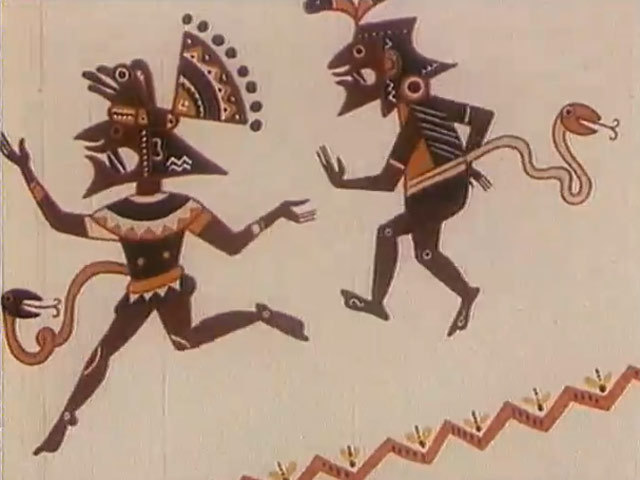 Фильм воспроизводит легенды перуанских индейцев при помощи старинных рисунков.Режиссер: В. Пекарь.